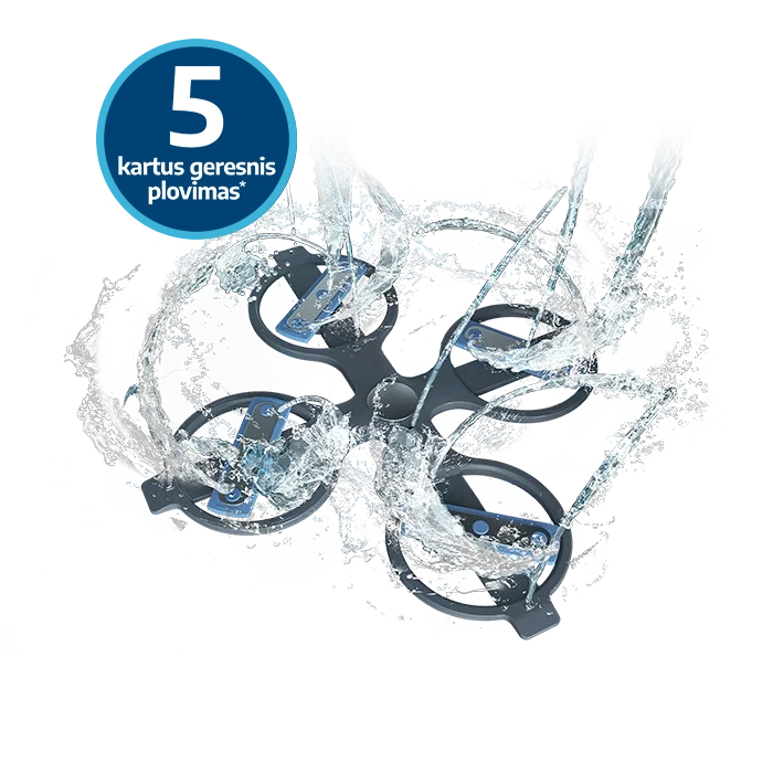 mėgaukitės nepriekaištinga švara. Keturi dvieigiai purkštuvai kiekvieną kartą užtikrina
