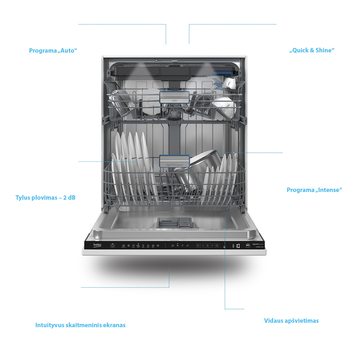 Su „PowerIntense“ kiekvienoje zonoje plaunama intensyviai, todėl jūsų indai bus